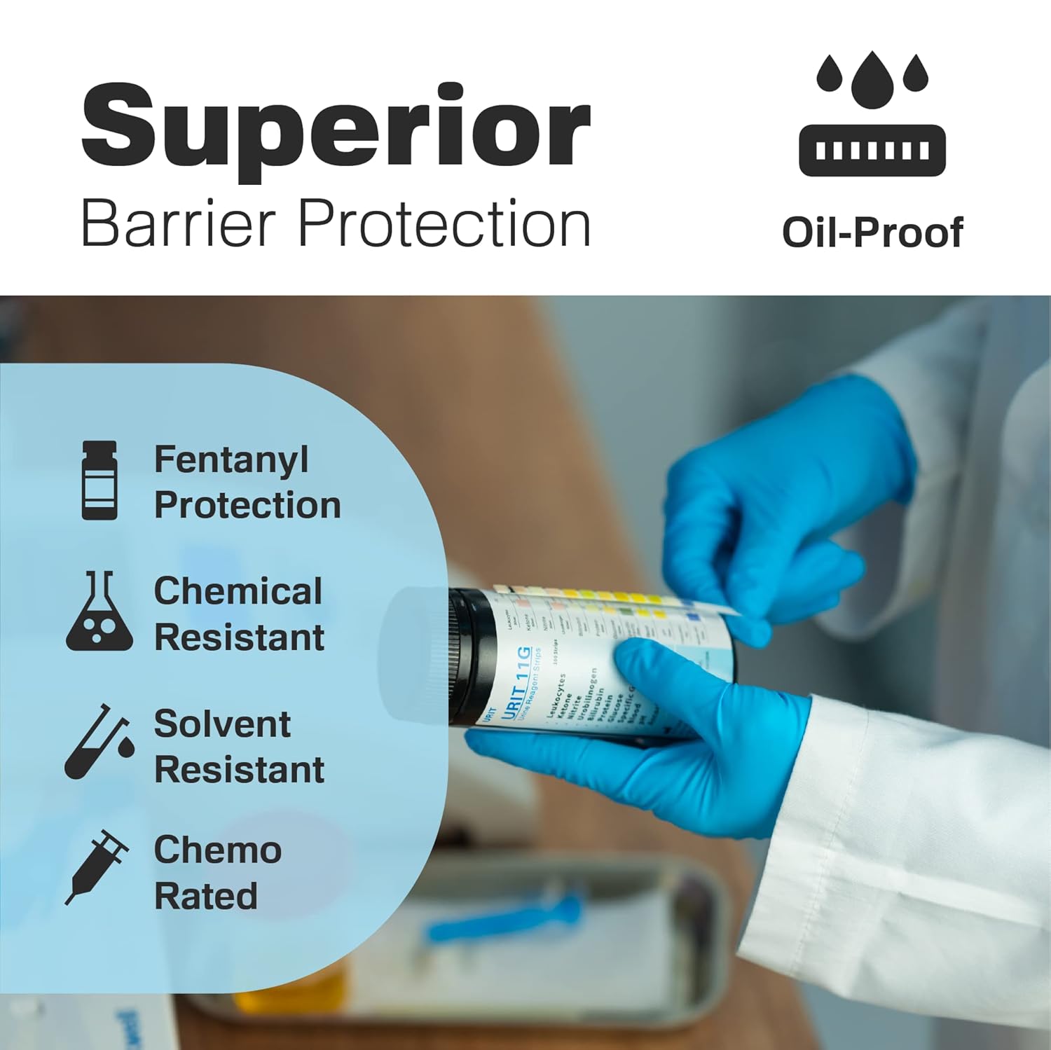 Chemo-rated, blue, nitrile, exam glove, 4 mil thickness
