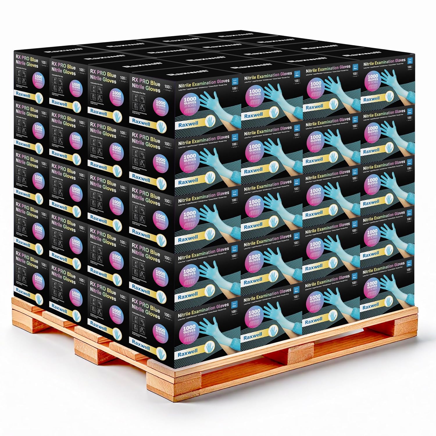 Raxwell RX301 Blue Nitrile Exam Gloves, Chemo Rated (4-mil) Pallet of 100 Cases